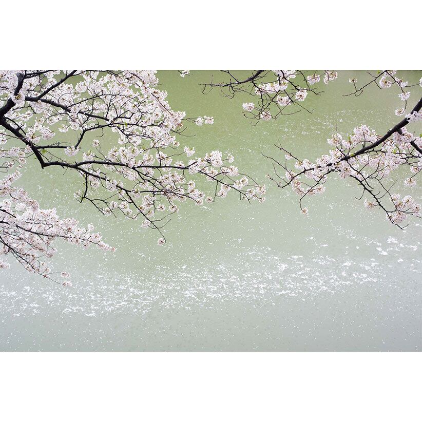 その日は雨が降り人の気配も少なく貸切状態で、濠を覗くと桜と川筏と雨粒のコンポジションが琳派の絵のようだった。